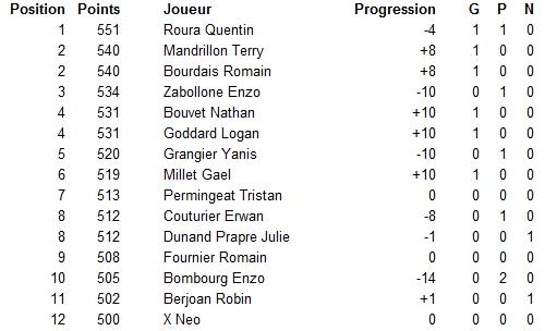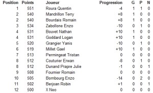 Au fait, quel est le dernier classement, celui que tout le monde attend à Mouxy ?