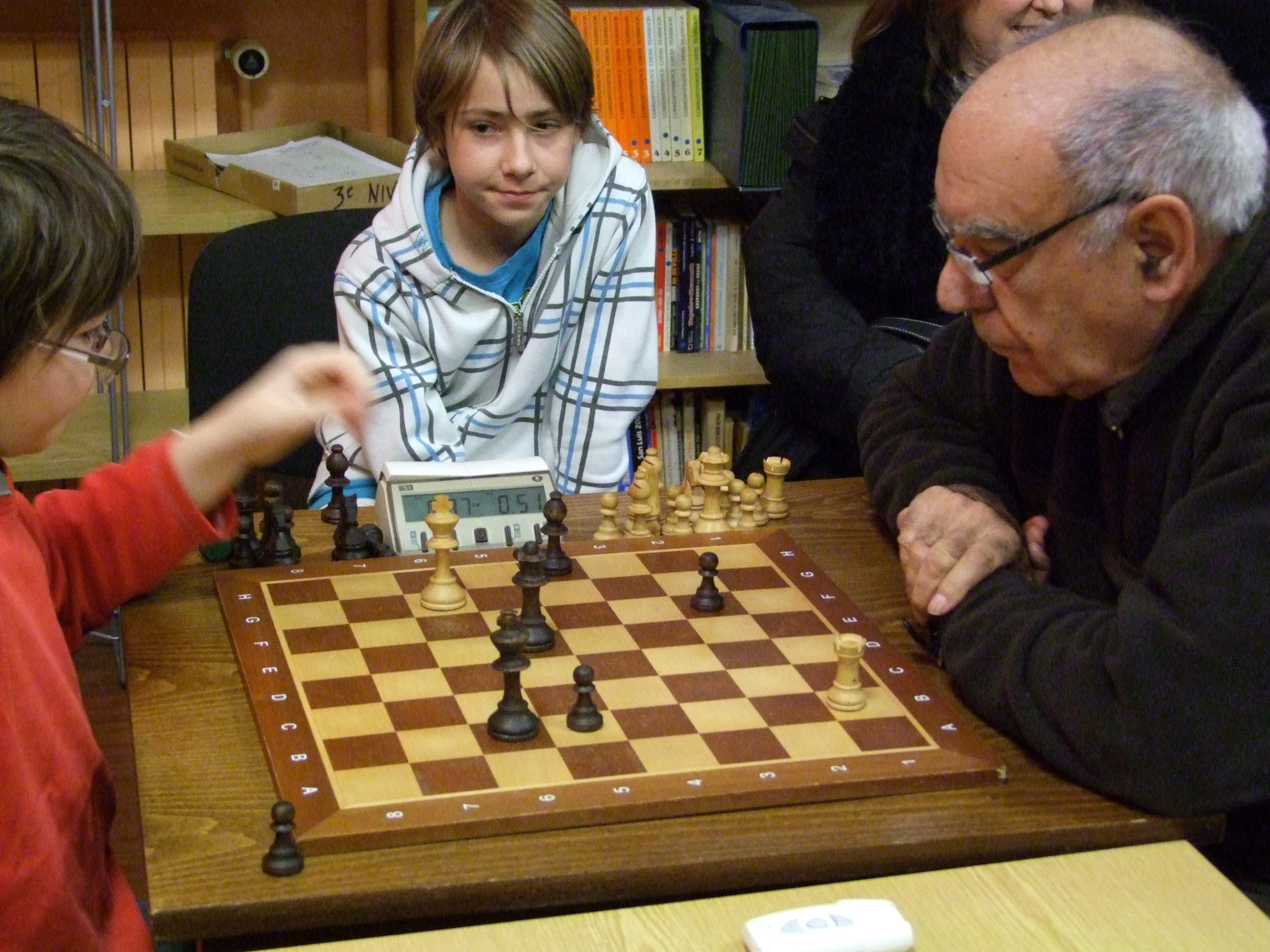 Le principal ou tournoi pro a donc connu une grande effervescence et un niveau jamais égalé: personne ne termine invaincu. Eugène ne succombe pas aux charmes de Virginie et parvient à tenir une finale de tours avec un pion de moins, vérifiant au passage l’adage qu’elles sont toujours nulles (les finales, pas les filles). Konogan et son pote Mathis n’ont pas marqué beaucoup de points, mais se sont bien amusés à tester la portabilité d’une pendule dans l’air. A la différence d’un frisbee qui demeure entier et souple, nous avons pu constater qu’une pendule électronique ne l’est plus à l’atterrissage, et qu’elle fait un vieux bruit de casserole lorsqu’elle perd ses vis et ses boulons.