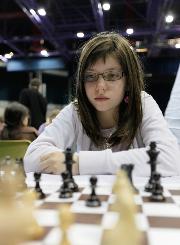 Bref, notre automate en jupons part sur les chapeaux de roue, à telle enseigne qu’elle se retrouve, au départ de la 3e ronde, sur l’échiquier nº 1, les projecteurs braqués sur elles, ce qu’elle n’aime pas du tout. Et ce n’est pas une image ! Sa partie a été retransmise en direct sur Internet, et nous avons pu nous ronger les ongles jusqu’au coude en suivant l’évolution de sa finale. Laurane n’a pas démérité, son adversaire non plus ; il se trouve que c’est la plus haute classée du concours. L’Aixoise s’incline, mais le moral est au beau fixe : à l’issue d’une ouverture très moyenne, elle a maintenu l’égalité très longtemps. Elle confirme, si besoin était, qu’elle est une des meilleures joueuses de sa génération au plan national.