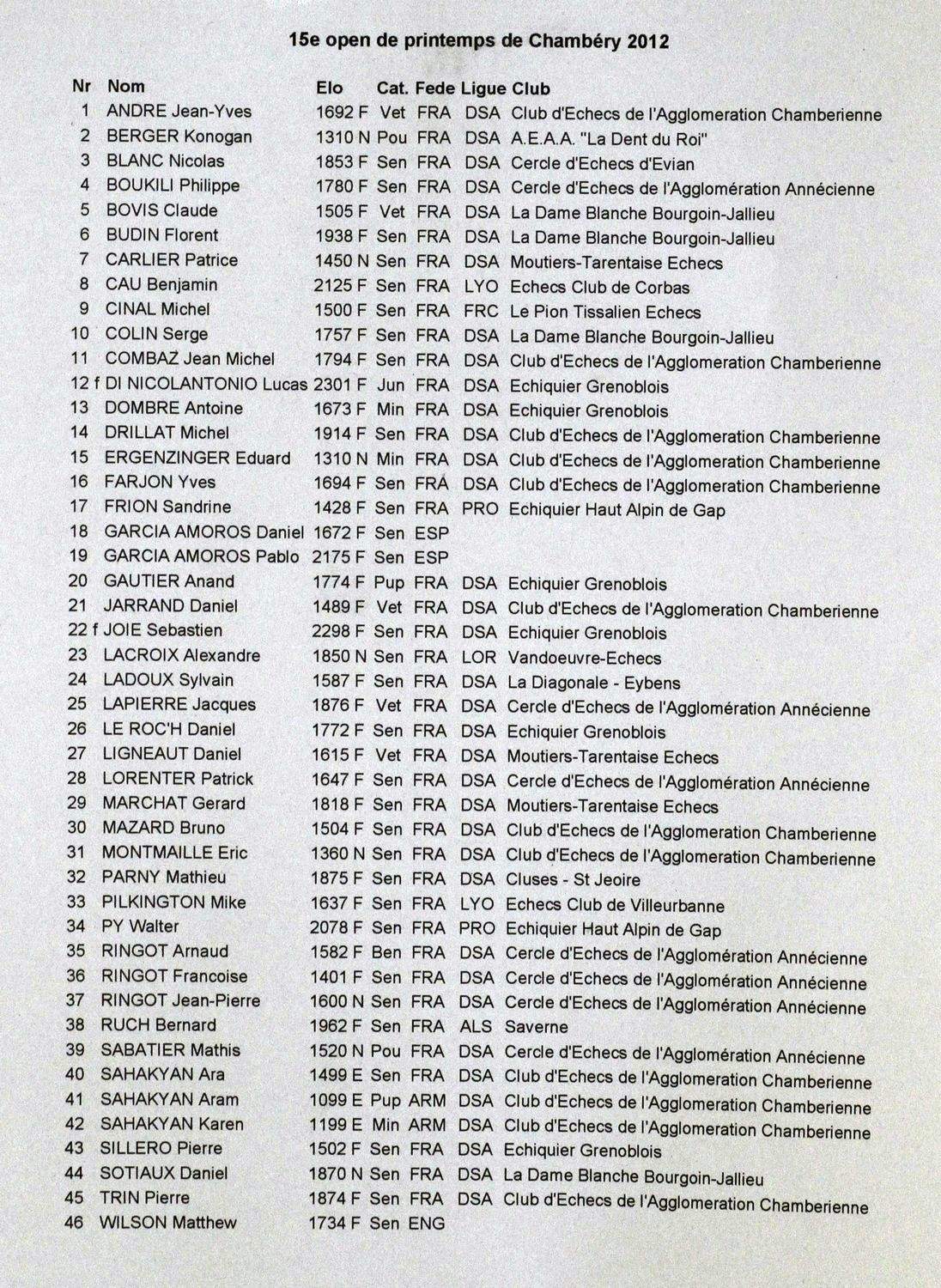 La liste des participants