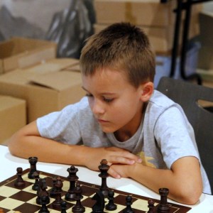 Eugène est encore et toujours en tête (avec 6,5 points / 7) après sa victoire sur Alain Goubet. Il semble qu’il ne veuille pas changer d’échiquier.