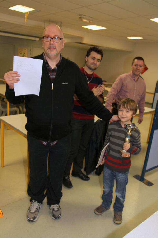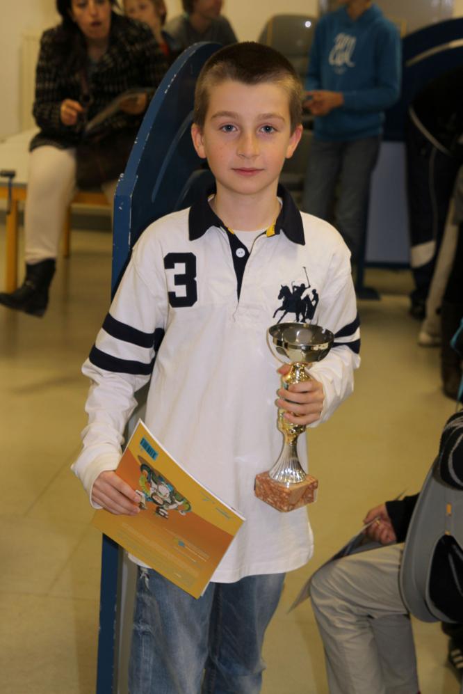 Rodolphe Frion termine 4ème du tournoi (3ème pupille) avec 4,5 points devant Mathilde Petitjean, première pupillette avec 4,5 points.
