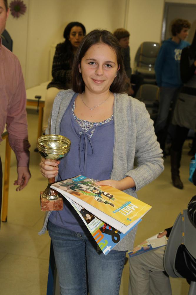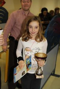 On retrouve 6 aixois dans les 9 premiers dont Manon Bajulaz, 1ère poussine avec 4 points, et l’étonnante Lola Milojevic-Daim qui a commencé les échecs depuis environ 3 semaines et qui termine septième du tournoi et première en petite poussine avec 4 points (1 défaite, 4 nulles et 2 victoires). Ses futurs adversaires ont intérêt de faire attention !