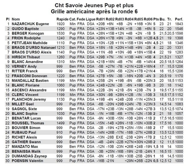 Chez les benjamins, le titre revient au chambérien Natanael Braos d’Urso (4 points) devant Andy Verney (4 points) et le chambérien Franck Ritter (4 points).
