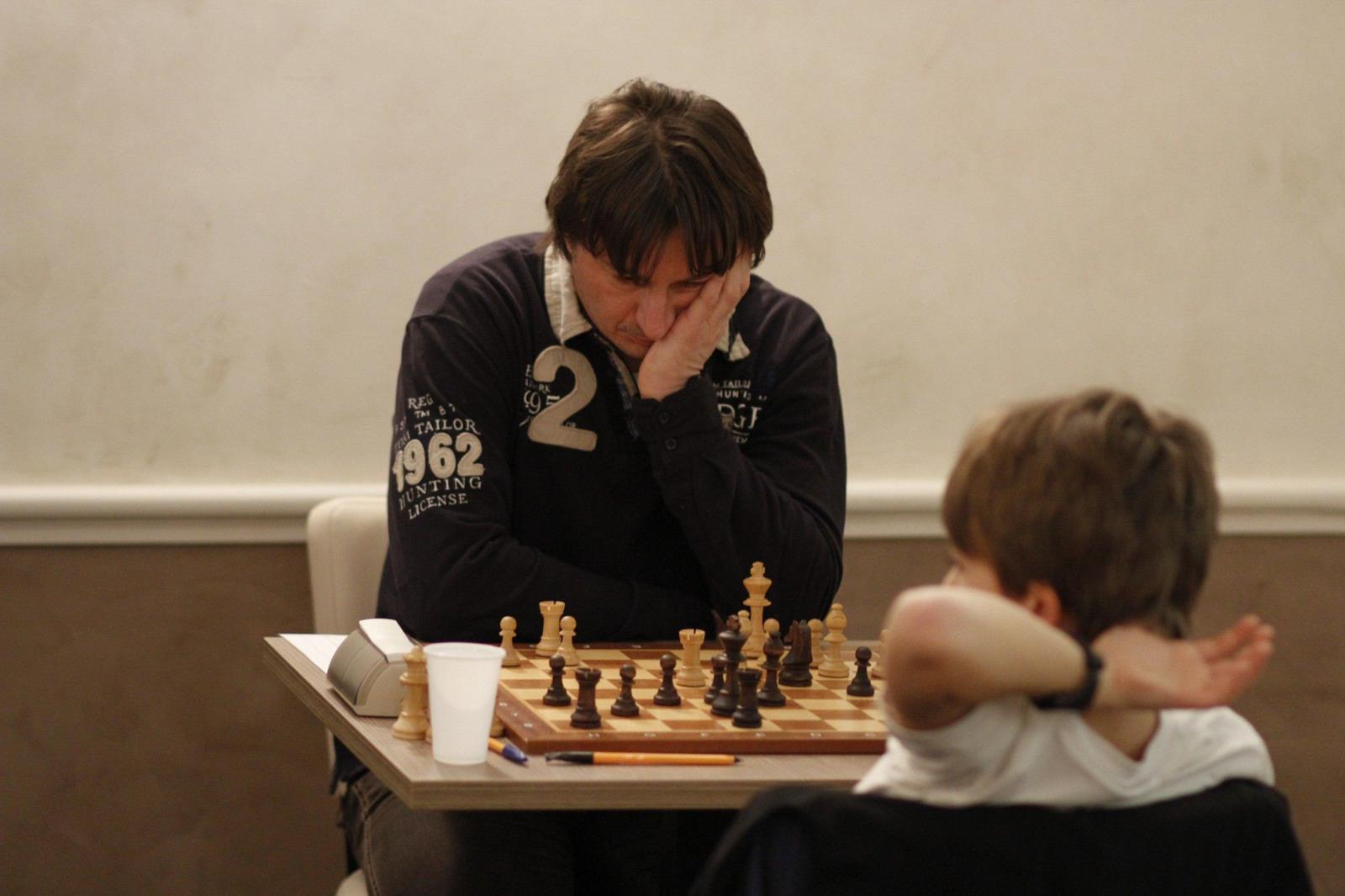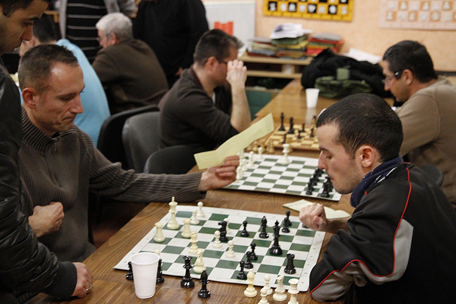 Après 1h20′ de jeu, le premier résultat tombe sur l’échiquier 6 : David, arrivé de Marseille en train le matin, est battu en 47 coups par Yves Farjon (1681F).