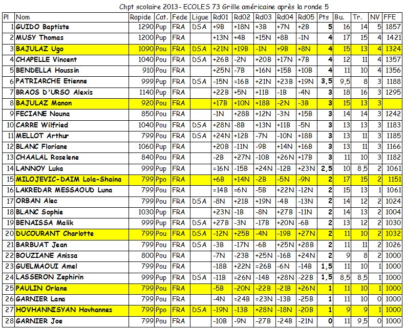 Ils ont tenu leur rang et ont très bien représenté le club : Ugo termine 3ème avec 4 points sur 5 en ne s’inclinant que contre le vainqueur Baptiste Guido alors que Manon finit 8ème (et 1ère fille) avec 3 points sur 5.