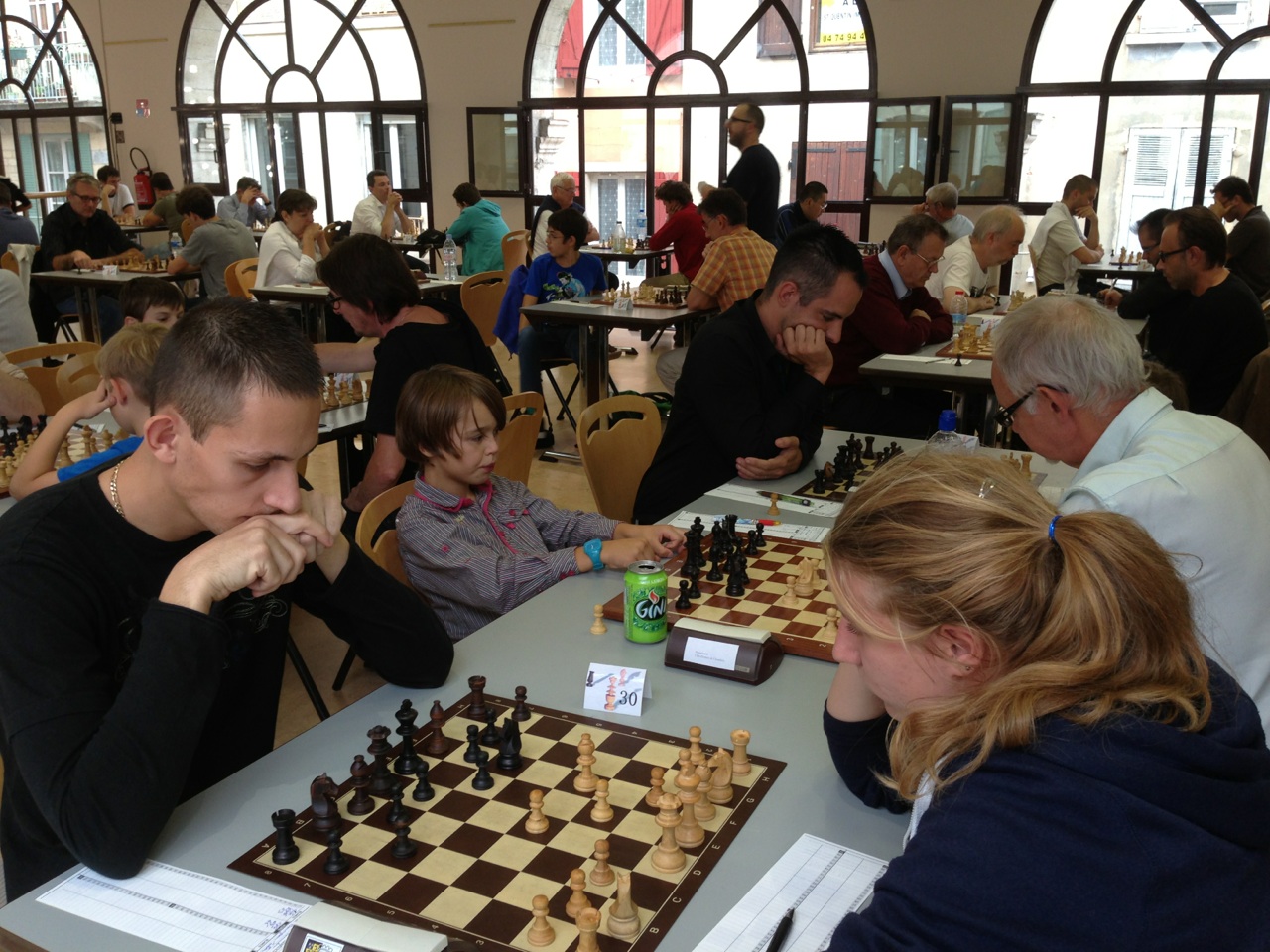 Le weekend dernier, les samedi 14 et dimanche 15 septembre, 90 joueurs se donnaient rencard autour d’une table d’échecs pour le 13ème Open de la ville de Bourgoin-Jallieu. Une petite troupe d’une dizaine d’aixois ont fait le déplacement. Cette année, ce tournoi innovait avec cinq rondes au lieu de six, et une cadence de 60 minutes + 30 secondes par coup, rendant cette compétition homologuée pour les joueurs FIDE de moins de 2200 élos.