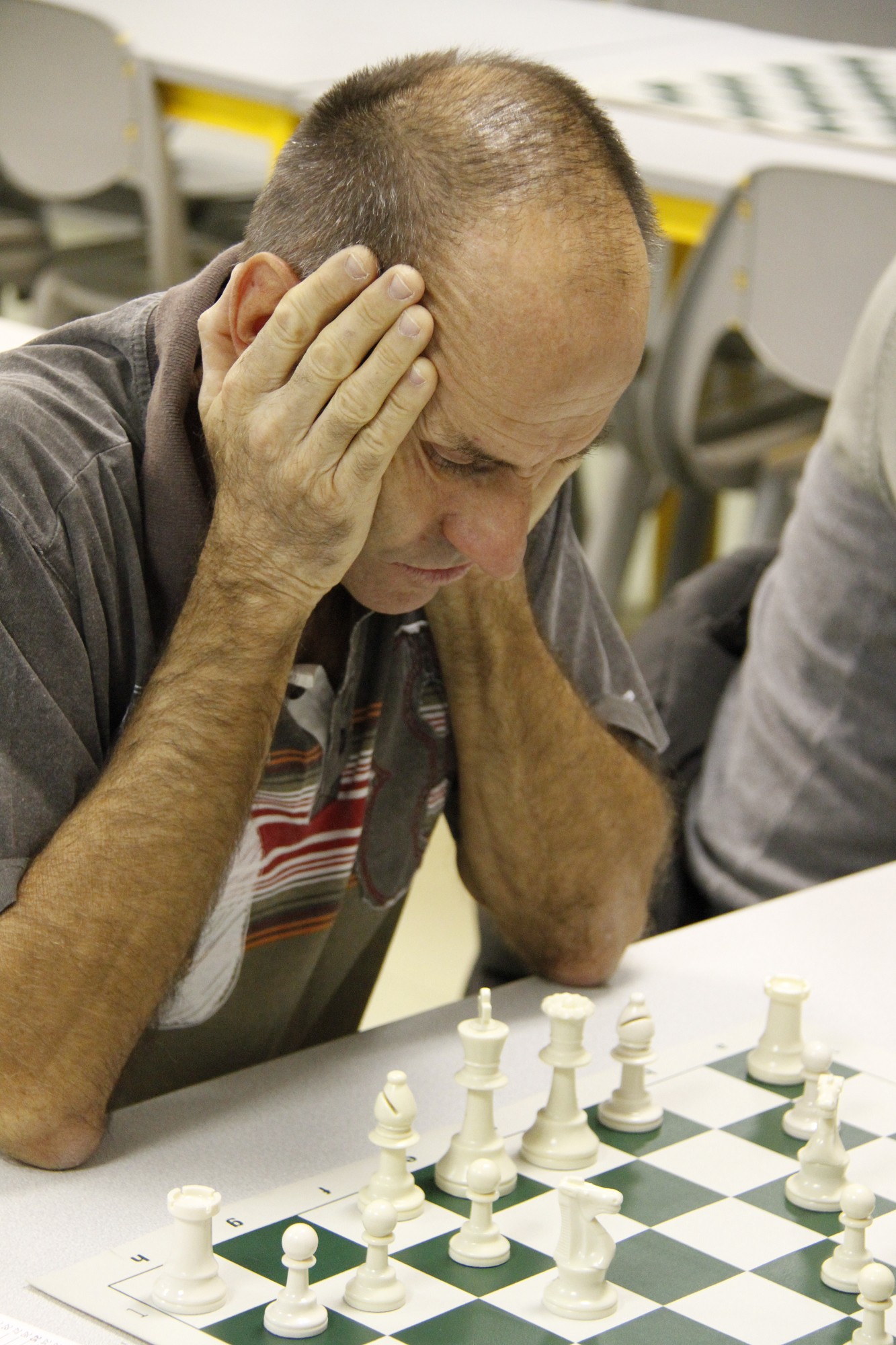 Sur l’échiquier 6, Philippe Lagier (1760N) dit Philou (et ce n’est pas qu’un diminutif) cherche depuis plusieurs minutes le mat.