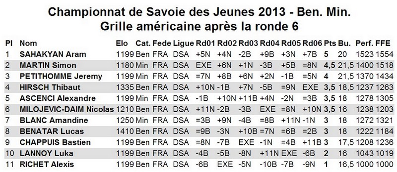 Une défaite lors de la 5ème ronde face au benjamin Chambérien Aram Sahakyan et le revoilà deuxième minime derrière Simon Martin.