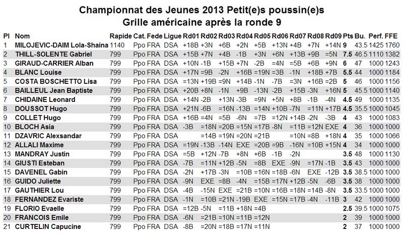 Ce dernier réalise la nulle lors de la dernière ronde face à Lucas Benatar. Une victoire de Jérémy face à son copain Alexandre Ascenci lui permettrait de remporter le titre minime au départage. Alexandre a besoin d’une victoire pour prendre la deuxième place qualificative pour le championnat de Ligue.
