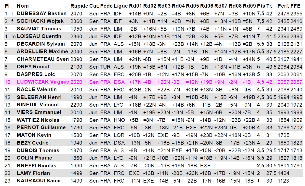 Quant à Virginie, elle finit seconde chez les filles et dixième (sur 23) au classement général avec une performance à 2056 élos !