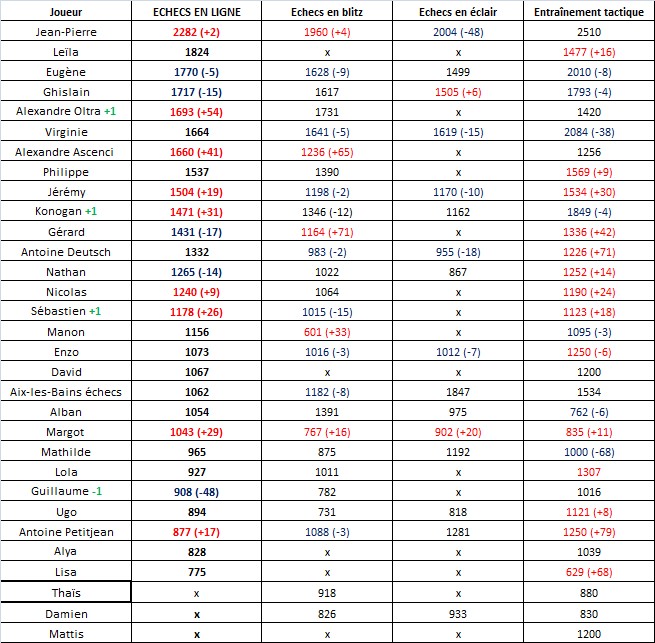 Margot est indéniablement la joueuse de la semaine. Une fois encore, elle augmente tous ses scores d’échecs. Bravo !