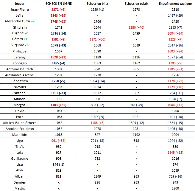 Le classement n’a pas beaucoup bougé si ce n’est pour les premiers ! En effet, si Jean-Pierre et Leïla maintiennent leur première et deuxième place respectivement, avec un petit progrès au score pour nos deux joueurs, ce n’est plus Eugène Le Terrible qui occupe la troisième place ! Notre étudiant en filière scientifique se fait détrôner par notre fin psychologue en première année, Alexandre Oltra. Ghislain, le matheux, s’accroche et compte faire la vie (échiquéenne) à Alexandre.