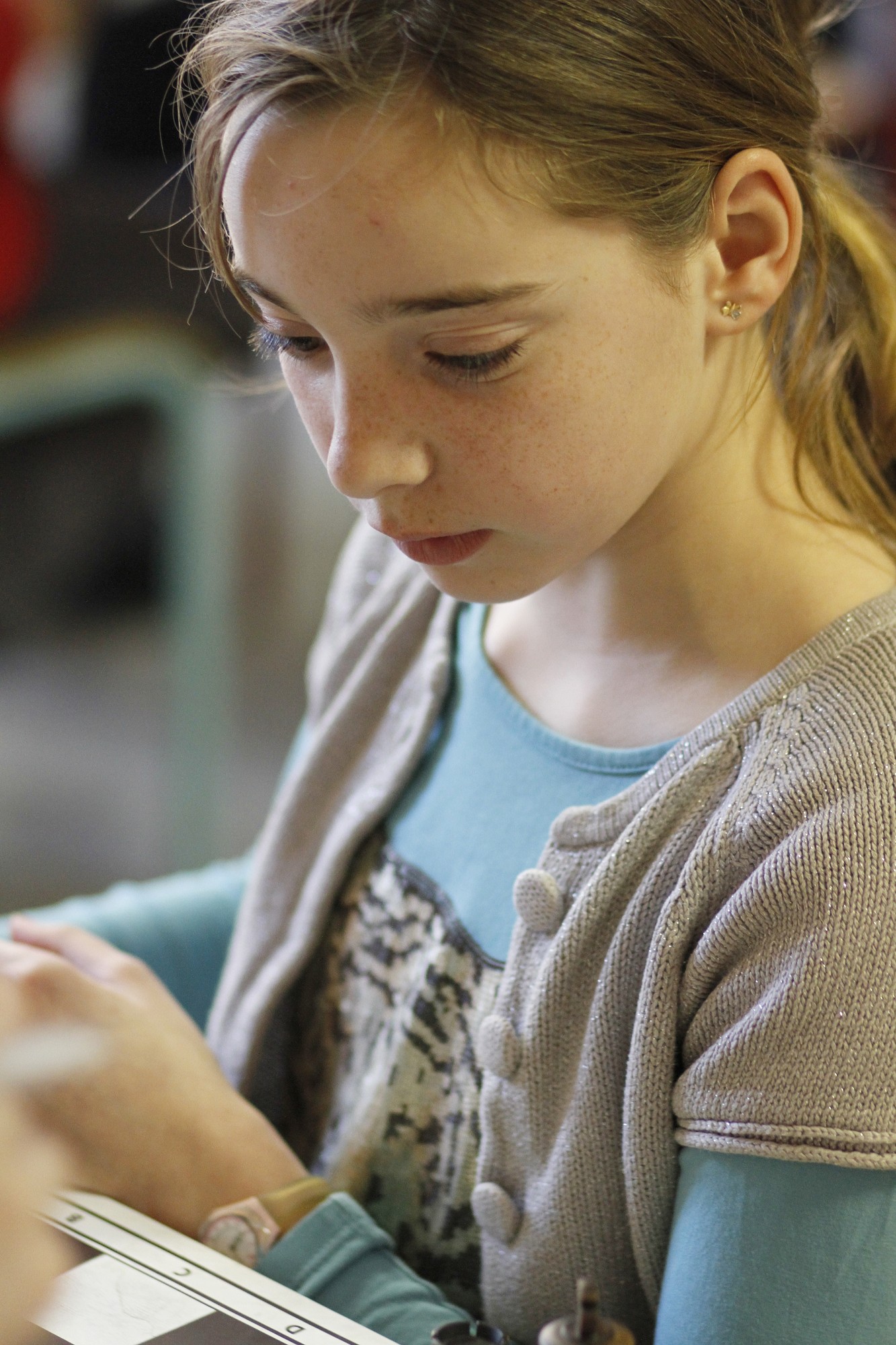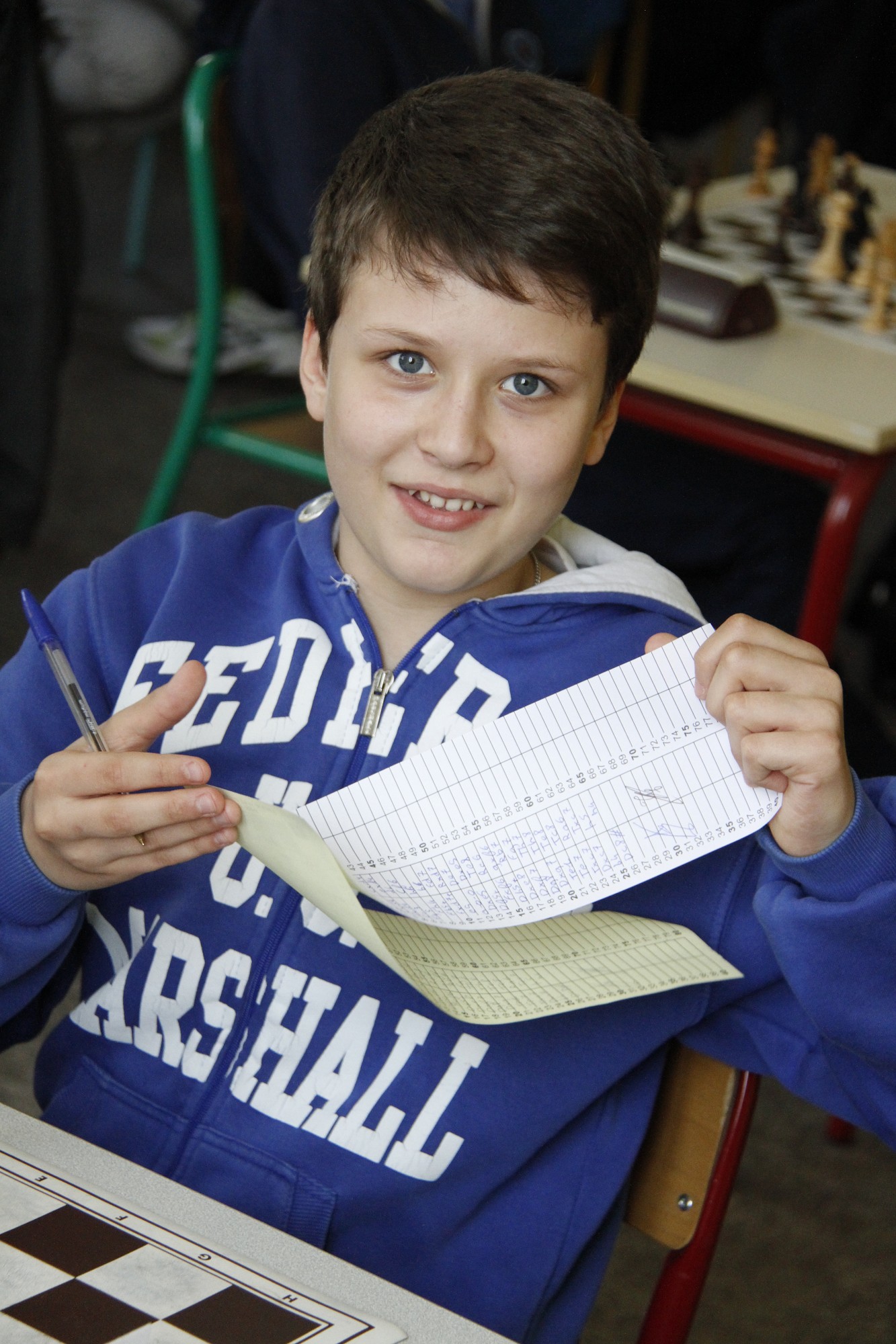 Arrivée un peu en retard (l’heure de la ronde a été avancée à 17h00 pour les pupilles afin de leur permettre de ne pas terminer trop tard), Mathilde loupe un peu son début de partie avant de se reprendre pour remporter brillamment son second point.