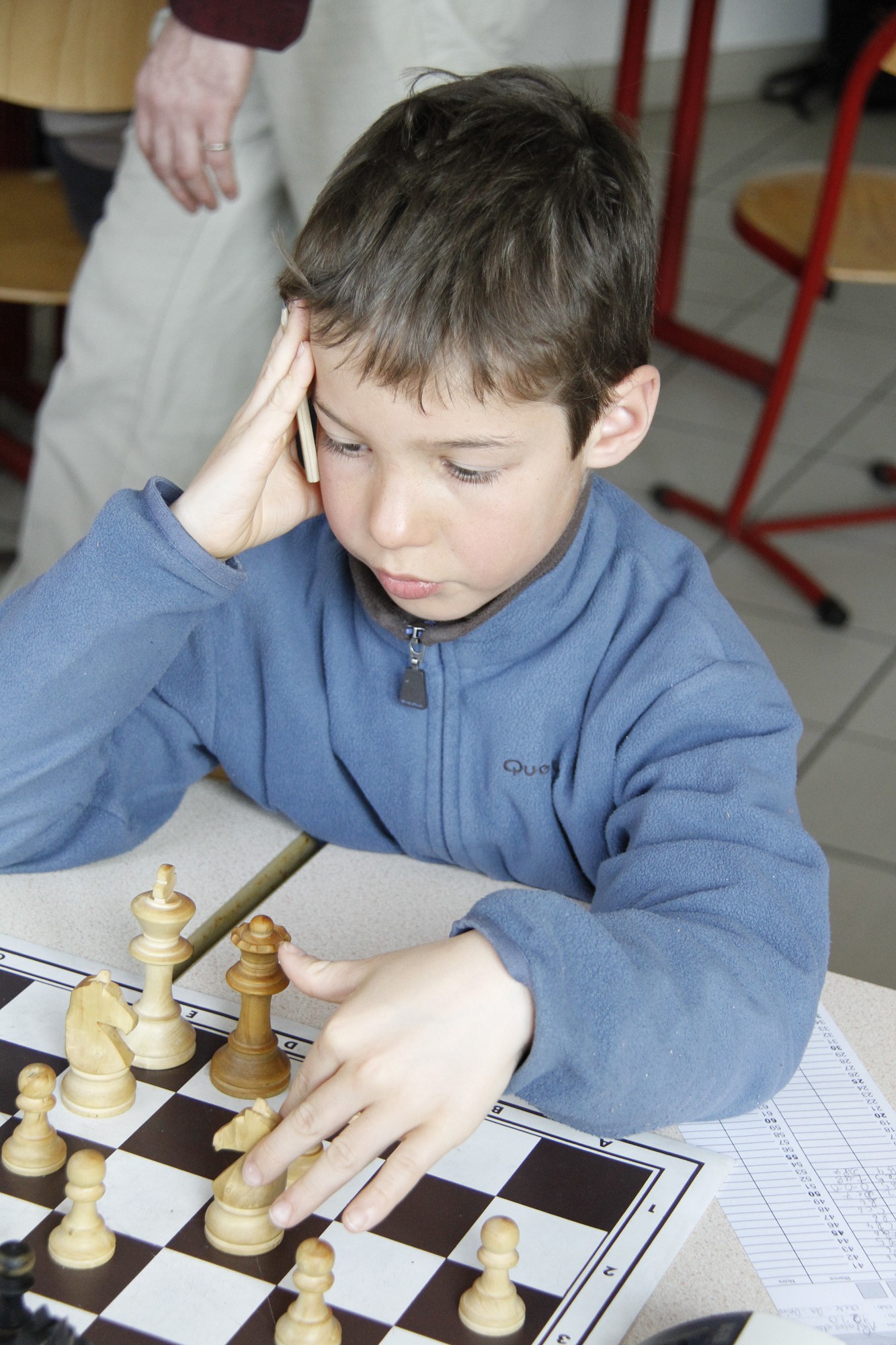 Ronde 3 : Konogan (1369 F) est opposé au Chambérien Adrien Bailleul (1546 F) pour la revanche du championnat de Savoie. Il perd en 30′ en se faisant mater après avoir pris un pion. Il a vu son erreur au moment où il prenait le pion : trop tard !