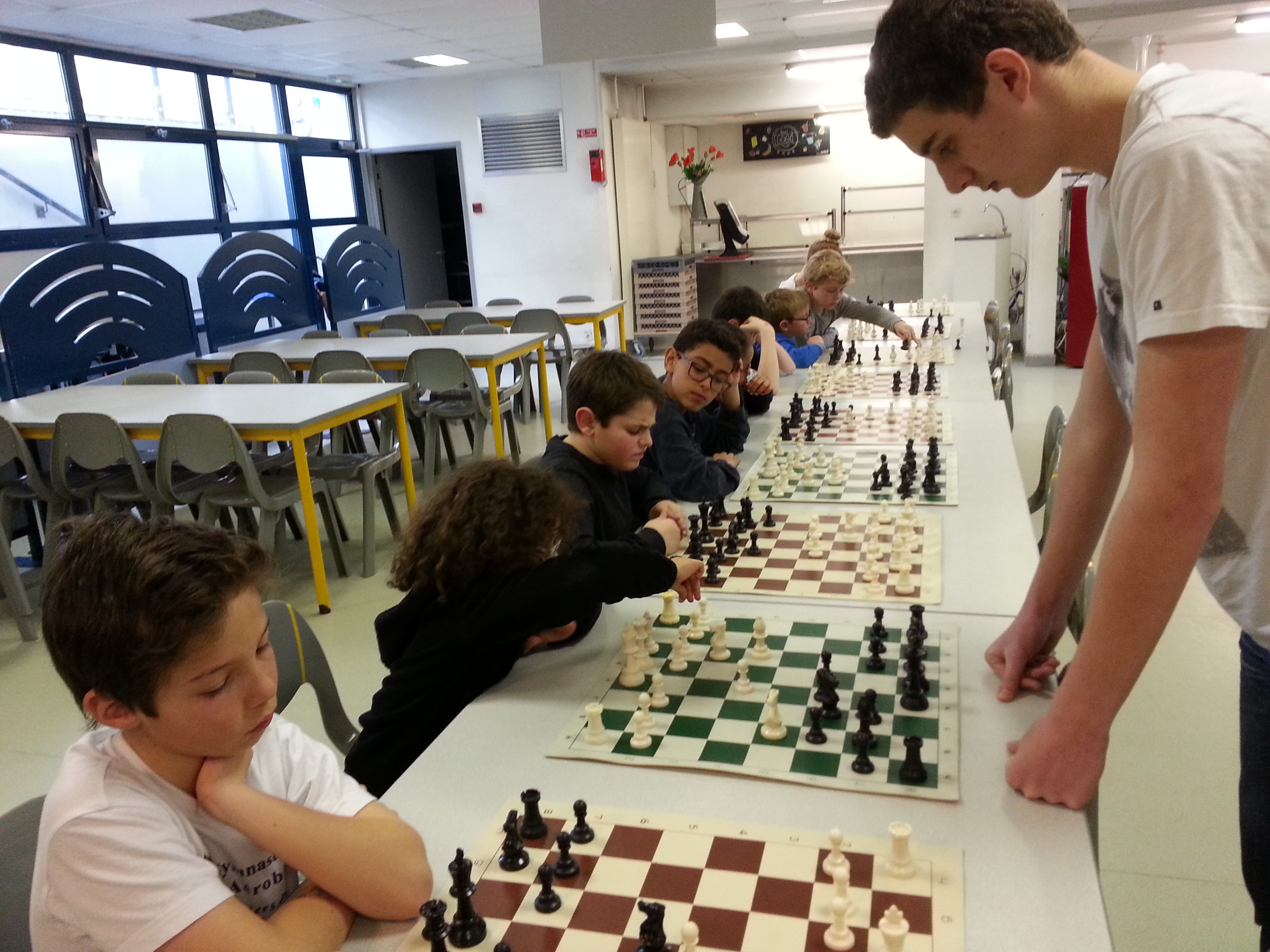 La venue d’Alexandre, 1er adjoint au maître, nous convainc d’organiser une « simultanée Joker » pour nous mettre en appétit. Alexandre joue à fond, mais les enfants disposent de 3 « jokers », ils peuvent reprendre leur coup 3 fois dans la partie. Cela pour faire la part belle au raisonnement, en évitant quand même le tripatouillage des pièces.