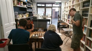 Quand l’école d’échecs est ouverte au fond du local pour les enfants , le club l’est aussi, dans l’autre salle du bar, pour les adultes.