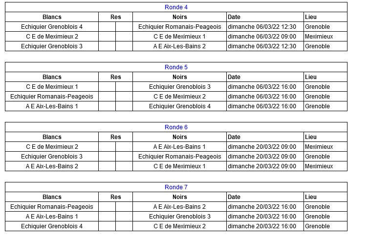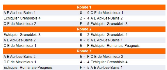A la sortie de ces 3 rondes de 50mn et du jeu des forfaits, Aix 1 et Aix 2 se placent en tête du classement.