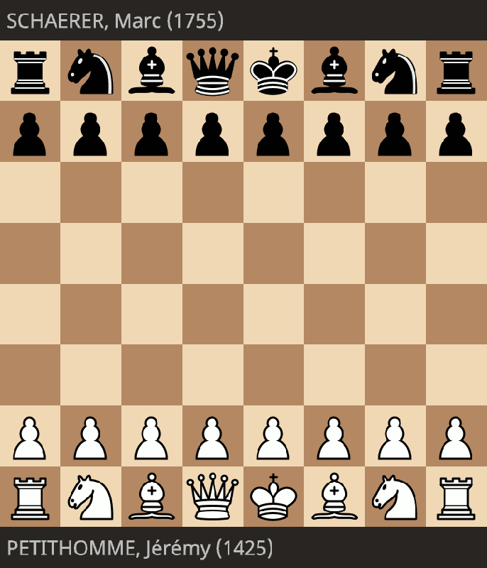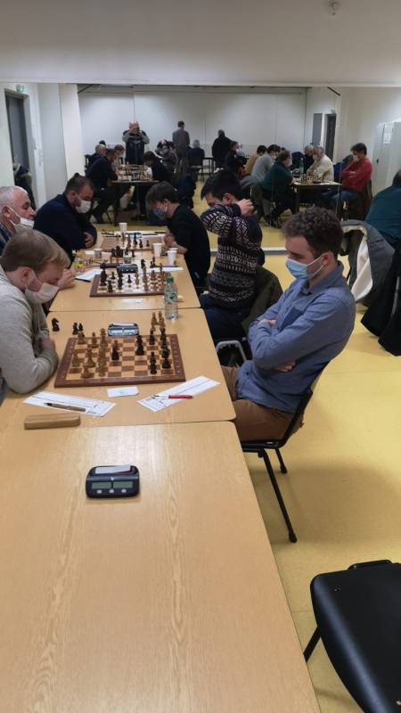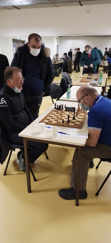 Nous lançons la ronde avec un retardataire, Jérémy Petihomme (elo 1425) qui arrive à nous rejoindre avec un peu de retard à la pendule mais qui nous évite de perdre sur les matchs 5 à 8. Il est opposé à Marc Shaerer ( 1755) . Jérémy signe une nulle avec les blancs après l’aval de son capitaine.