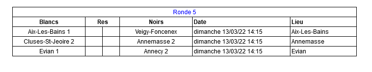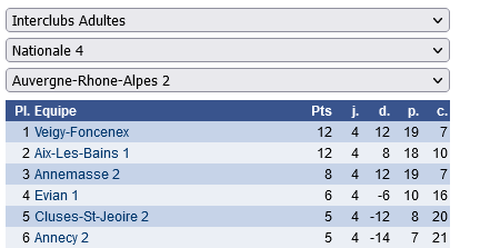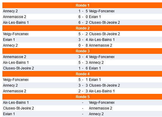 Merci à l’équipe d’Annemasse pour ce match. Suite aux différents résultats, 2 équipes jouent pour la première place et se rencontreront lors de la dernière ronde.