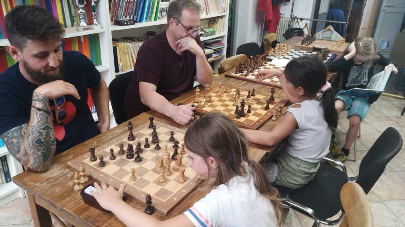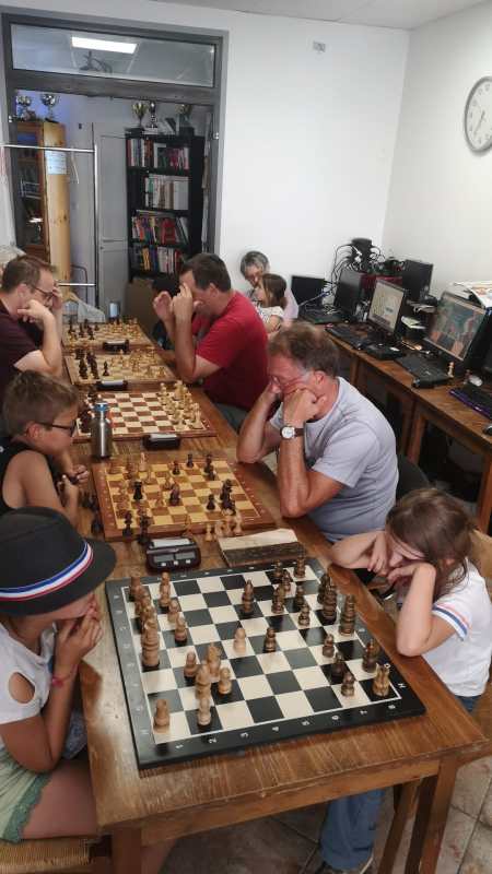 Vendredi, le traditionnel Blitz fut plus léger que d’habitude. le programme chargé des jours suivants et la fin de saison a eu un un petit impact sur la fréquentation. Néanmoins, ce rendez vous du vendredi est une belle réussite et est devenu un incontournable du club avec une illustration flagrante de ce qu’on appelle une discipline intergénérationnelle. L' »apéro-blitz », qui commence à 19 h 30, est fréquenté autant par les seniors que les enfants, dont certains ont moins de 7 ans ! L’année prochaine, nous prévoyons des tournois rapides le samedi et un tournoi interne homologué FFE en parties longues.