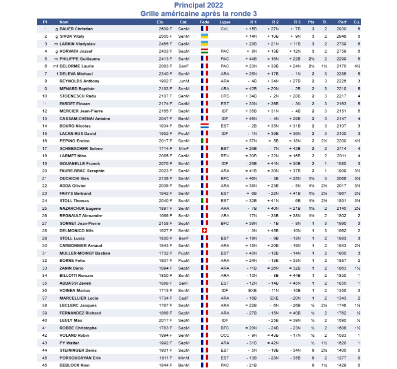 Après 3 rondes, voici les grilles. Nos Joueurs se comportent remarquablement.