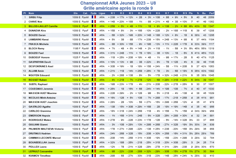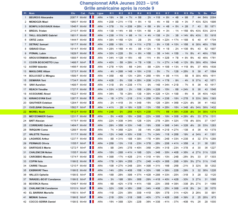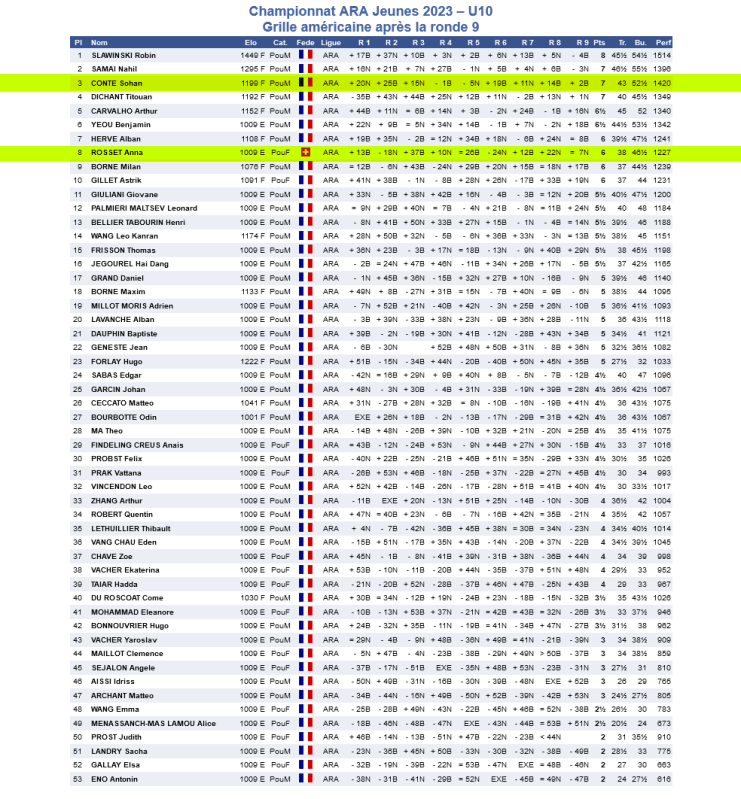 Cassandre Lepault termine 31ème avec 1 1/2 /9 et une notation parfaite de ses parties.