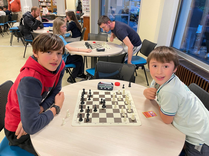 Thomas, habitué des places d’honneur, a eu sa chance en obtenant une position gagnante contre Camille, mais il a oublié le temps. Il s’est un peu vengé plus tard sur le leader de l’Aix-Elo, le classement interne de l’Académie, Valentin (à gauche).