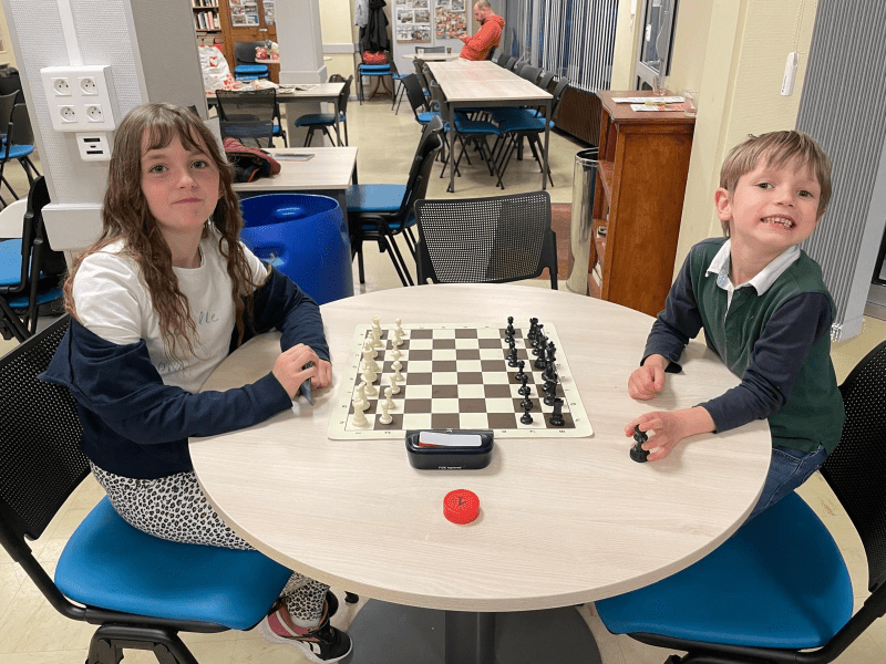 On notera avec plaisir le « coming out » de Stacia Guesmia, grande copine d’Ikram. « Je veux devenir Championne d’échecs ». Elle adore ce jeu. Elle vient 4 fois par semaine aux échecs, on entendra certainement parler d’elle dès l’année prochaine. Camille fait des émules !