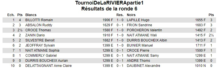 BILLOTTI Romain 1906 F 1 – 0 LAPILLE Hugo 1655 F