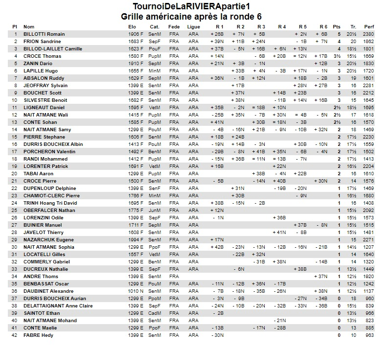 NAIT ATMANE Sophia 1299 E 0 – 1 CROCE Pierre 1500 F