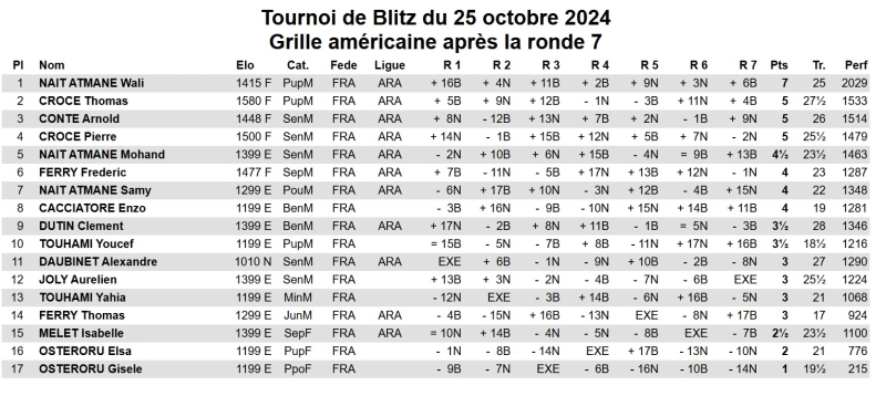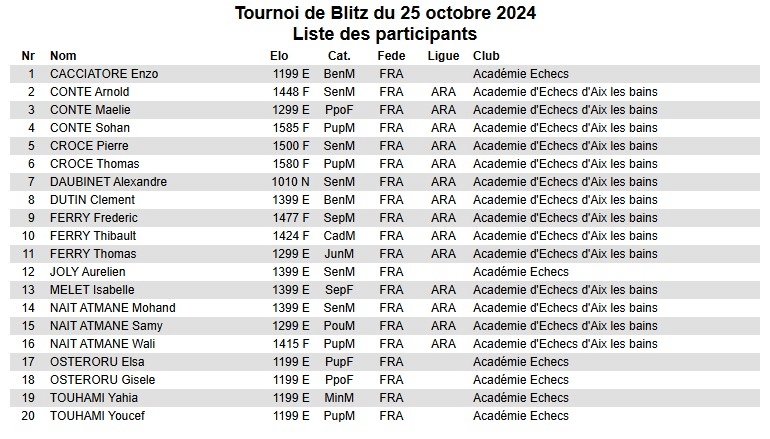 Prochain tournoi de Blitz: samedi 9 novembre 2024.