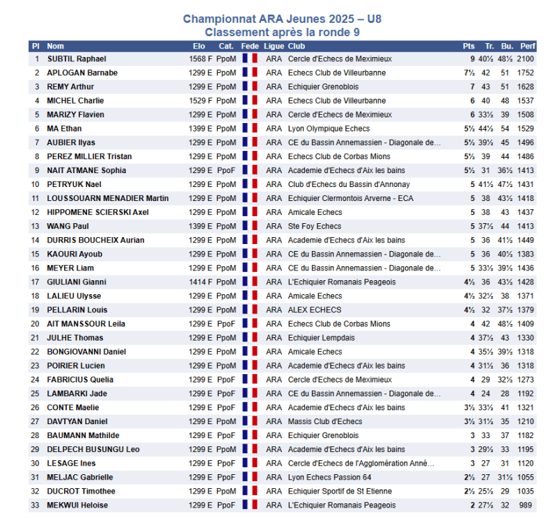 9e au classement général mixte, Sophia Nait Artmane représentera son club l’Académie d’Echecs d’Aix-les-Bains aux prochains championnats de France jeunes de Vichy, du 27 avril au 4 mai 2025.