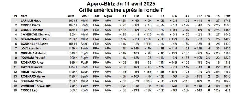 Il s’achemine donc vers un 100% comme Camille la semaine dernière mais c’est sans compter sur la pugnacité du lycéen Paul Beau-Bianchi qui lui infligera une défaite. La même mésaventure arrivera à Thomas face à Clément Casenove ! Le niveau s’améliore. En dehors des précités, Pierre, Antoine et Youcef s’améliore, tandis qu’Alya s’installe en tant que premier échiquier féminin du club.