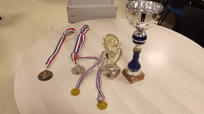 Le podium. Alya, 1er prix féminin, et Hugo ont échangé leur coupe ! Médailles d’encouragement pour les lycéens Paul et Clément.