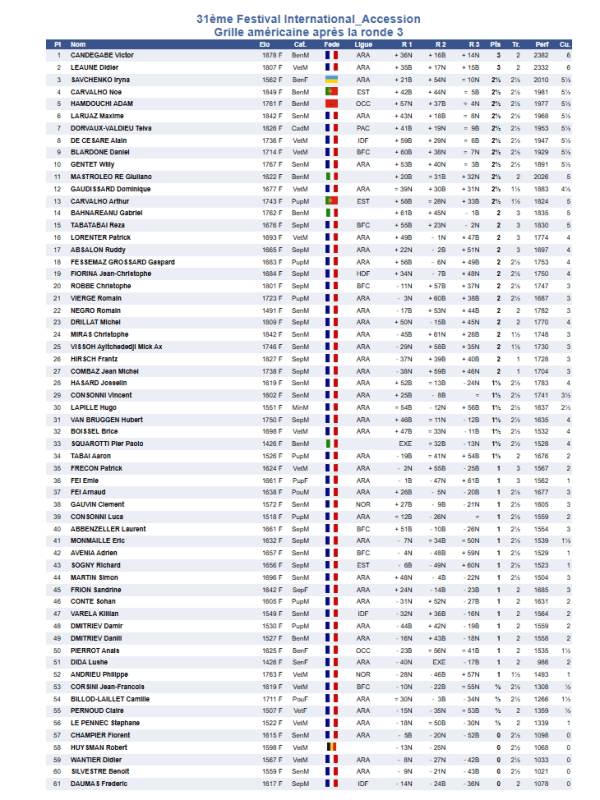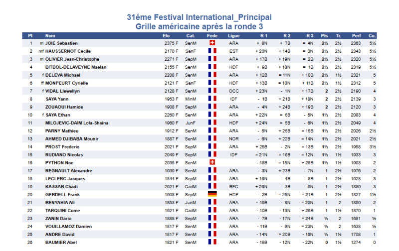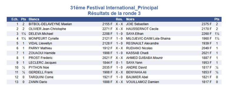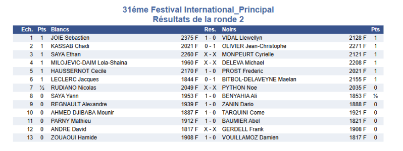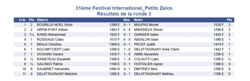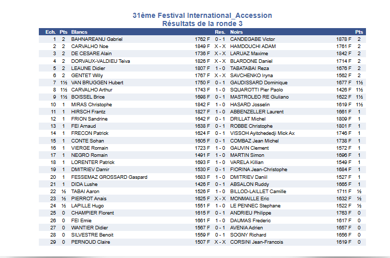 Nos trois représentants, visiblement éprouvés par les longues batailles matinales, ont connu un après-midi sans éclat. Aucune victoire à signaler : la fatigue, tapie dans l’ombre des pendules, semble avoir eu raison des dernières réserves d’énergie.