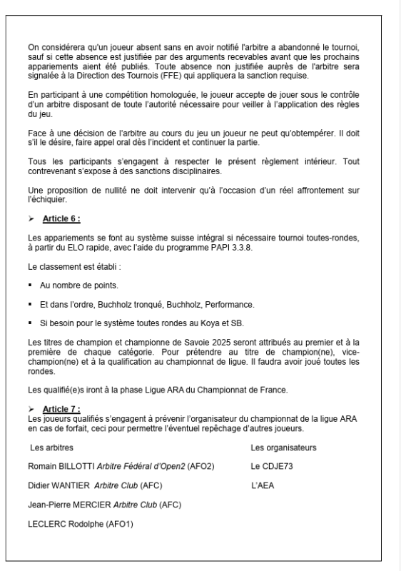 A toute l’équipe d’animation, fort nombreuse, de l’Académie d’échecs d’Aix-les-Bains, a qui l’on doit notamment l’installation la veille de toute la salle et la tenue de la buvette par Christine, Marie et Maelie, ainsi que les autres mamans du club. Cette équipe est désormais rodée et prête pour de plus amples évènements échiquéens.