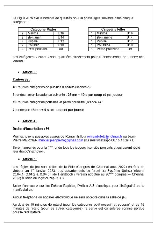 6 rondes de 25 mn + 10 s par coup et par joueur