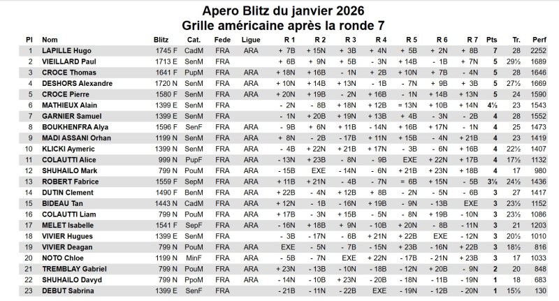 Prochain tournoi de blitz ouvert à tous même aux passants le vendredi 9 janvier 2026 à partir de 20h au 131 boulevard du Président Wilson dans le quartier de la Gare d’Aix-les-Bains.