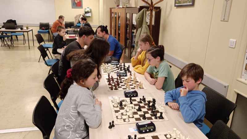 20 participants …dont un nouveau, Seva, qui nous vient de Russie. Il a appris le maniement de la pendule la veille, et il marque 4 points pour son premier tournoi. C’est bon signe !