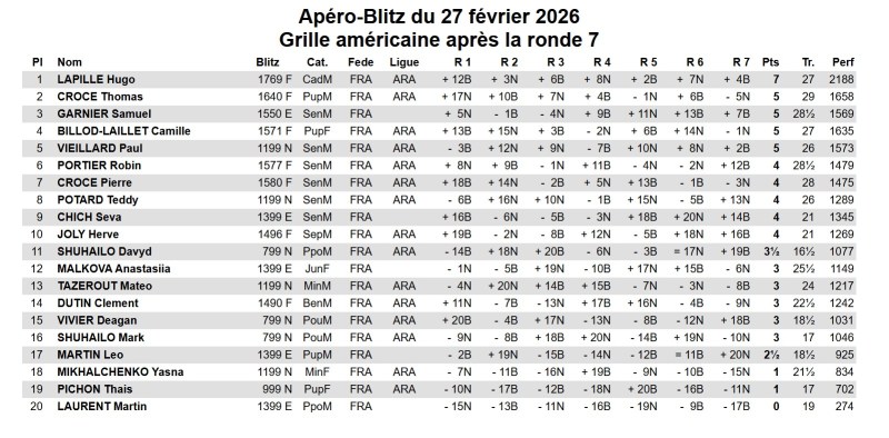 Prochain tournoi de blitz ouvert à tous même aux passants le vendredi 6 mars 2026 à partir de 19h30 au 131 boulevard du Président Wilson dans le quartier de la Gare d’Aix-les-Bains.