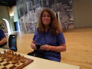 On ne présente plus notre Vivi nationale, qui est passé, en une saison, d’un seul coup d’un seul, de 1530 à 2050 au classement élo éponyme. Ex-surdoué des échecs, Virginie a développé un style de jeu qui lui est propre, hors canon de l’académisme des écoles d’échecs. Une sorte de jeu de rue, qui fait qu’elle excelle dans les parties sauvages et en contre-attaques diverses. Merci à ses partenaires de la place de la mairie!